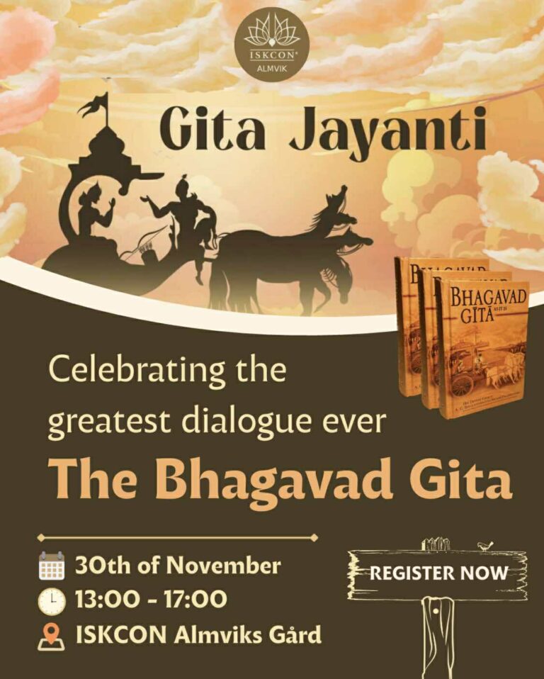 Varje söndag firar vi vår traditionella söndagsfest med ett föredrag över Bhagavad-gita, en vedisk arati-ceremoni, andlig musik och en vegetarisk festmåltid.